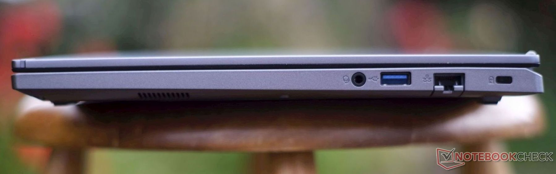 - پورت LAN گیگابیتی (RJ45) و قفل امنیتی Kensington و جک ۳.۵ میلی متری صدا در سمت راست.