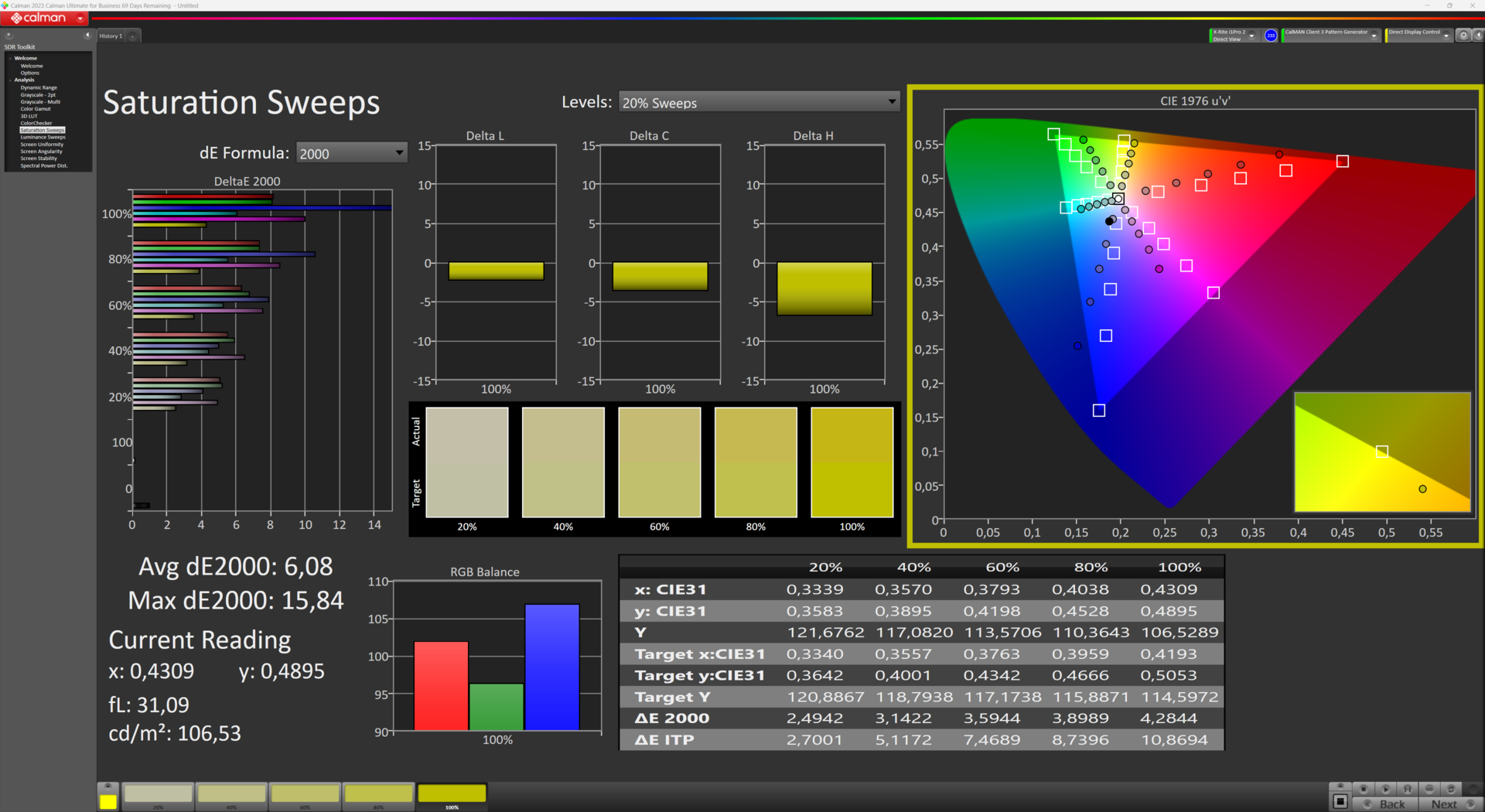 - پوشش رنگ: حدود ۵۸٪ از فضای sRGB (برخی اعداد در جدول زیر)