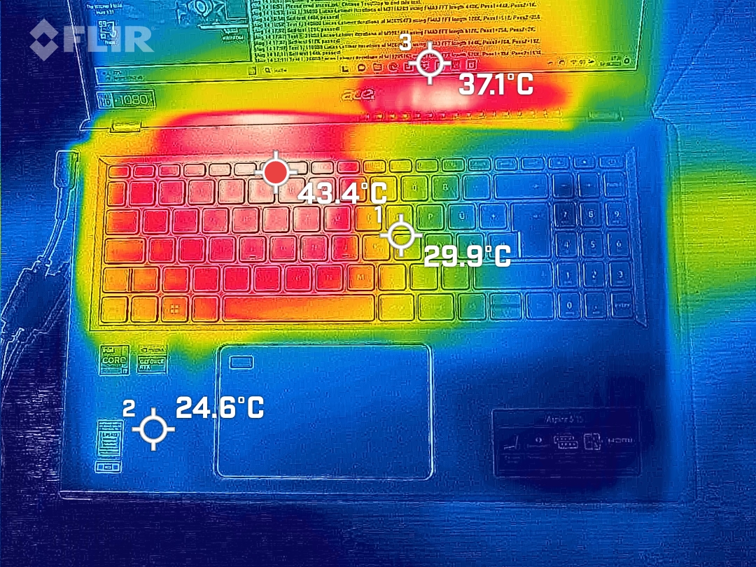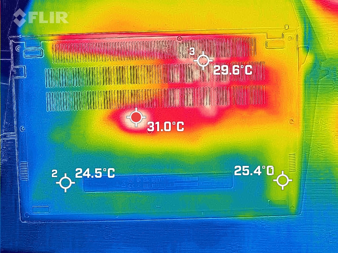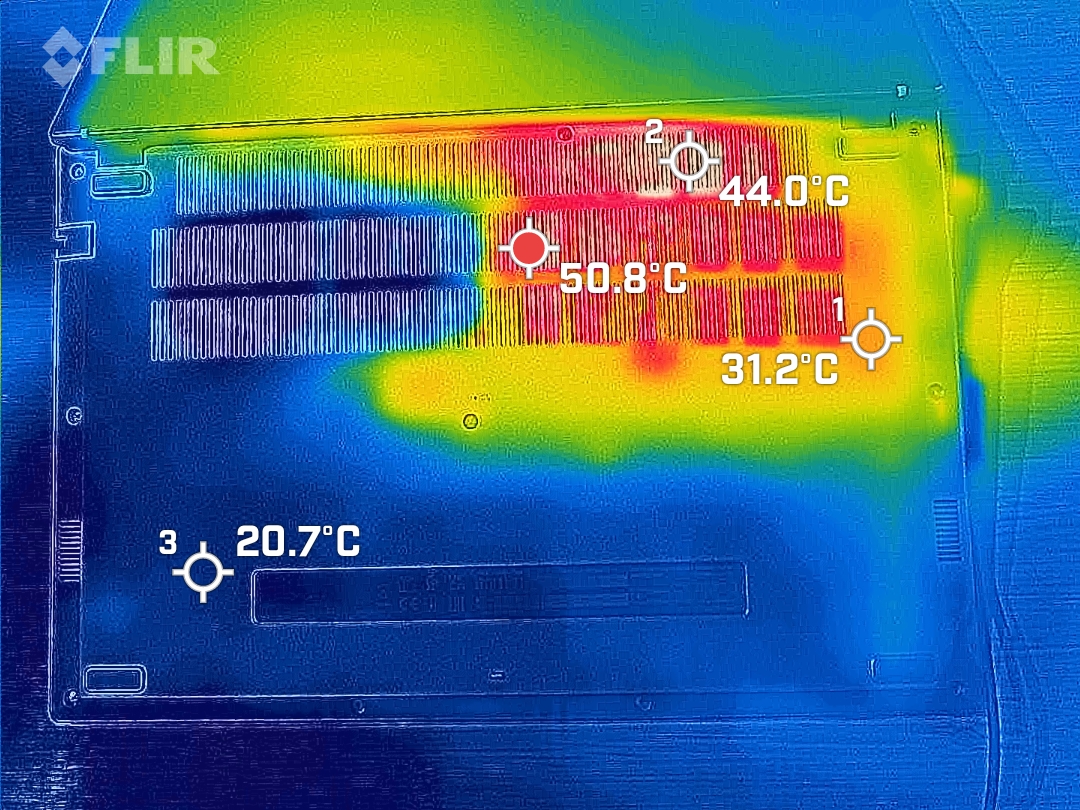 - مصرف در حالت بازی: میانگین ~۶۱ وات؛ به مراتب کمتر از Asus TUF A15 (~۱۳۶ وات) یا ThinkBook 16 G4+ (~۸۳ وات).