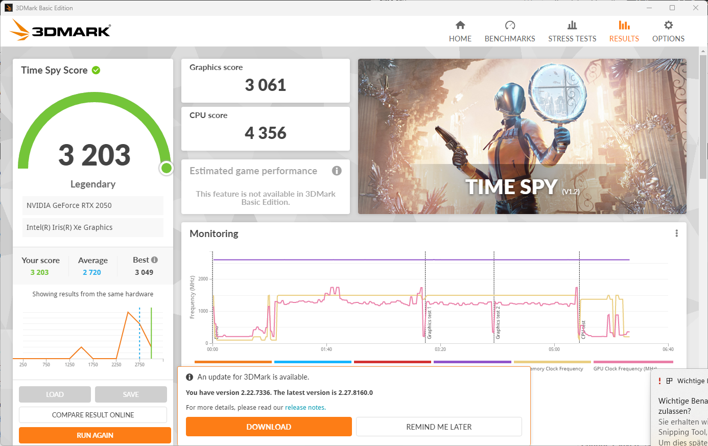 | Honor MagicBook 14 2022 | Core i5-12500H | RTX 2050 | ~۴۷.۷ |