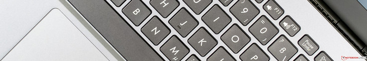 صفحهکلید این دستگاه در ابعاد استاندارد دسکتاپ و با کلیدهای اصلاحی (Shift، Ctrl، Backspace) در اندازهی کامل طراحی شده است. ارگونومی بسیار مطلوبی دارد و کار با آن لذتبخش است. کلیدها دارای سطح مقعر و ضدلغزش، با عمق حرکتی 1.5 میلیمتر هستند که با توجه به ضخامت کم دستگاه، چشمگیر محسوب میشود. نقطهی عملکرد کلیدها واضح است و ضربهها کمی نرم شدهاند. تنها نکتهی منفی، صدای بلند کلیدهای بزرگ همچون فاصله (Space) است که استفاده در محیطهای آرام را دشوار میسازد. صفحهکلید در برابر فشار، خم نمیشود و نور پسزمینهی سهسطحی یکنواختی دارد.