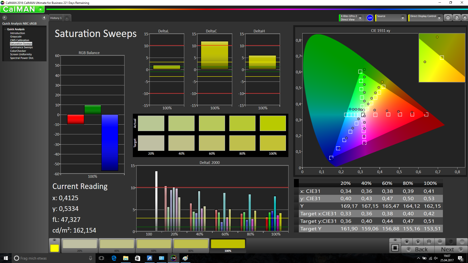 در محیط خارجی و زیر نور مستقیم خورشید، حتی با روشنایی بالا و پوشش مات، صفحه تقریباً غیرقابل استفاده بود و تنها در سایه عملکرد بهتری داشت. زاویهی دید نیز در مقایسه با نمایشگرهای IPS متوسط بوده و در حدود 45 درجه کاهش روشنایی و کنتراست مشاهده میشود، هرچند رنگها ثابت باقی میمانند.