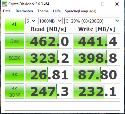 4K-64 Read (MB/s) | 360.1 | 367.4 (2%) | 1465 (307%) | - | 234 (-35%) |