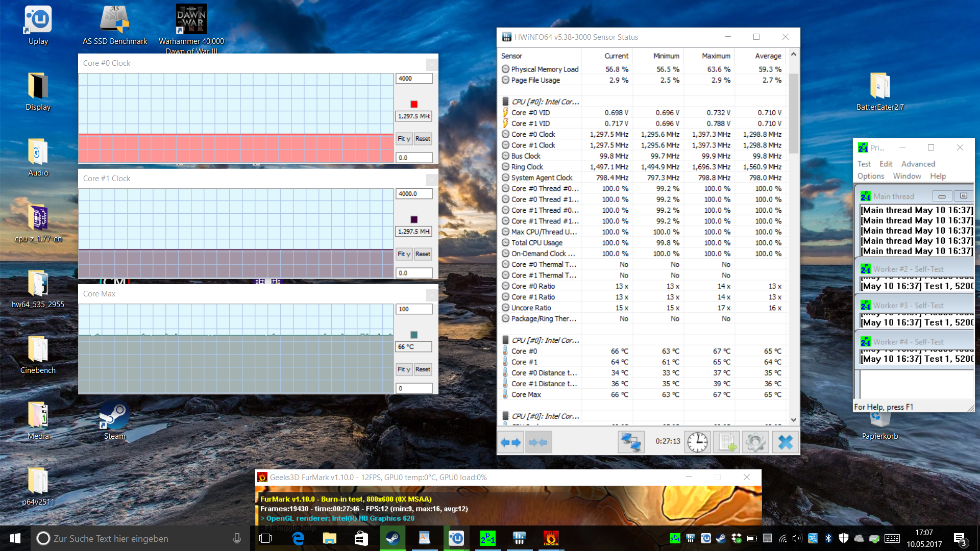 همانطور که نمودارهای مربوط به رفتار فرکانس در بارگذاری مداوم نشان میدهد، i7 در بار مداوم تفاوت چشمگیری با i5 ندارد. توان حرارتی پایین (ULV) تنها 15 وات روی i5 چندان محدودکننده نیست و بنابراین، در اکثر کاربردهای عملی، برتری عملکرد پردازندهی گرانتر به حدی ناچیز میرسد که شاید زیاد محسوس نباشد. در سناریوهای بدون بار یا اوجهای کوتاه بار، ممکن است (بهطور جزئی) از توربوی تکهستهای بالاتر i7 بهره ببرید. مشابه مدل GV0100T، امتیازها در حالت استفاده از باتری تغییری نمیکنند.
