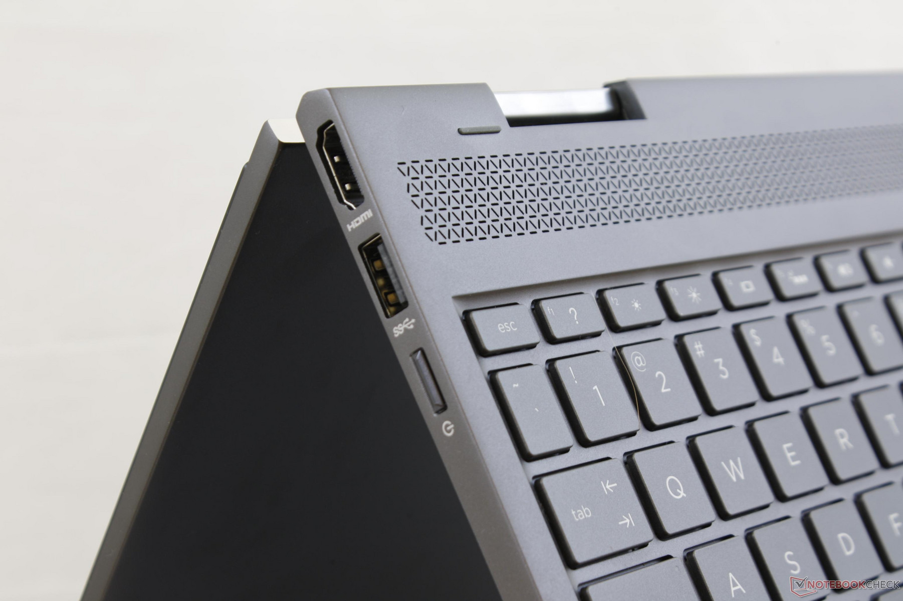 متأسفانه، درگاههای این دستگاه بیشتر مشابه Pavilion x360 است تا Spectre x360. در واقع، در مقایسه با مدل سال گذشته، HP درگاه اترنت و یکی از پورتهای USB Type-A را حذف کرده و بهجای آن فقط یک پورت USB Type-C Gen 1 اضافه کرده است.