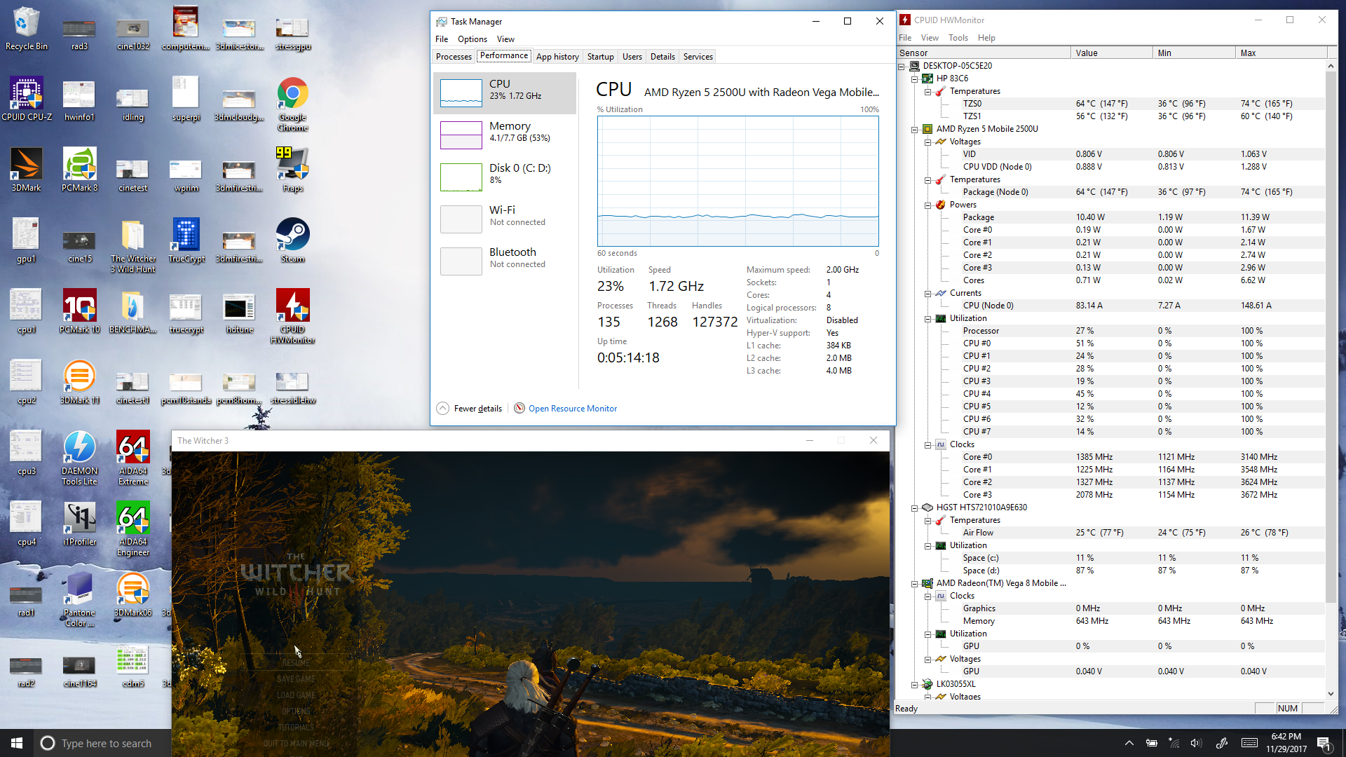 در حالت بیکار، حداکثر بار و اجرای بازی Witcher 3