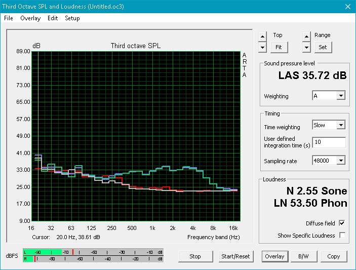 ✖ بارهای پردازشی سبک مانند مرور صفحات وب باعث میشود که فن بهطور متناوب بین 32 dB(A) و 34 dB(A) تغییر کند که این تغییر مداوم، نویز فن را حتی بیشتر به یک عامل مزاحم تبدیل میکند.