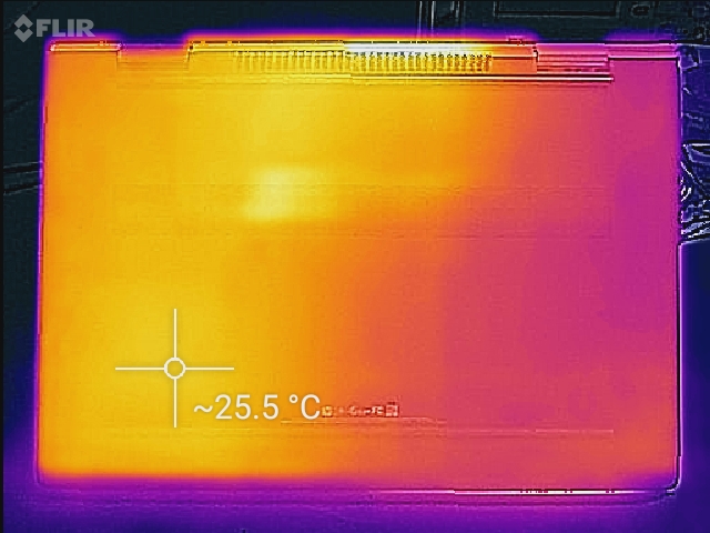 ✔ هنگام کار در حالت بیکار، دمای سطح لپتاپ در هر دو طرف یکنواخت است.