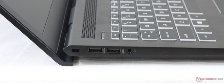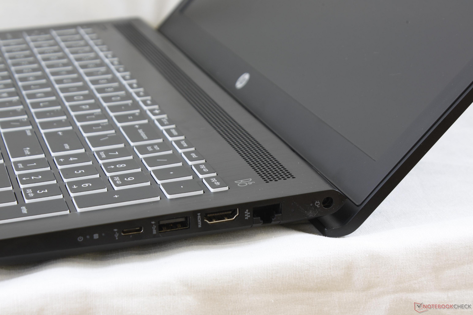 پورتهای موجود تقریباً مشابه پورتهای Pavilion 15t هستند با اضافه شدن یک پورت USB Type-C Gen. 1 و حذف درایو نوری. HP تصمیم گرفته است که پشتیبانی از Thunderbolt 3 را شامل نکند و این ویژگی را برای نوتبوکهای گرانتر خود از سریهای Spectre و Omen اختصاص دهد. به طور کلی، پورتها در مکانهای مناسبی قرار دارند و دسترسی به آنها آسان است، به طوری که هیچ پورتی در قسمت پشتی دستگاه قرار ندارد.