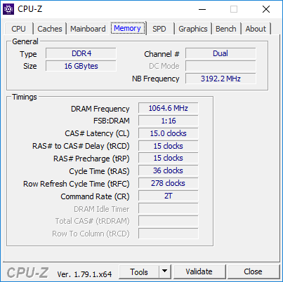 - حافظه: 16 گیگابایت، DDR4 با فرکانس 1300 MHz، دو کاناله، تایمینگ 15-15-15-36