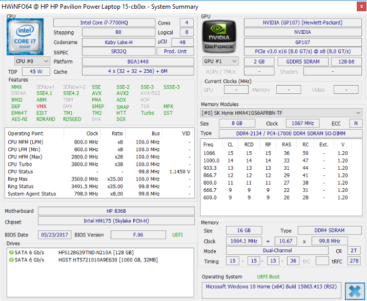 6700HQ، GeForce GTX 960M، SanDisk Z400s SD8SNAT-128G، IPS، 1920x1080، 17.3"