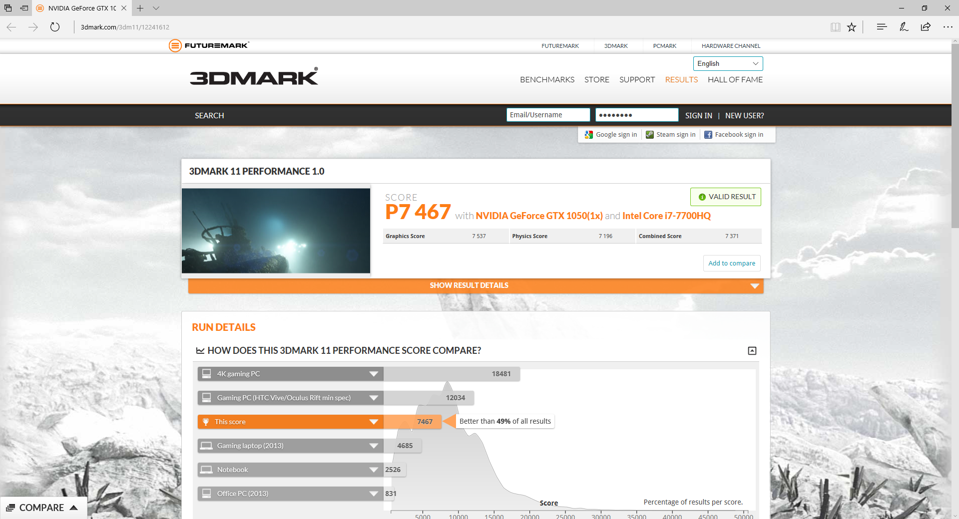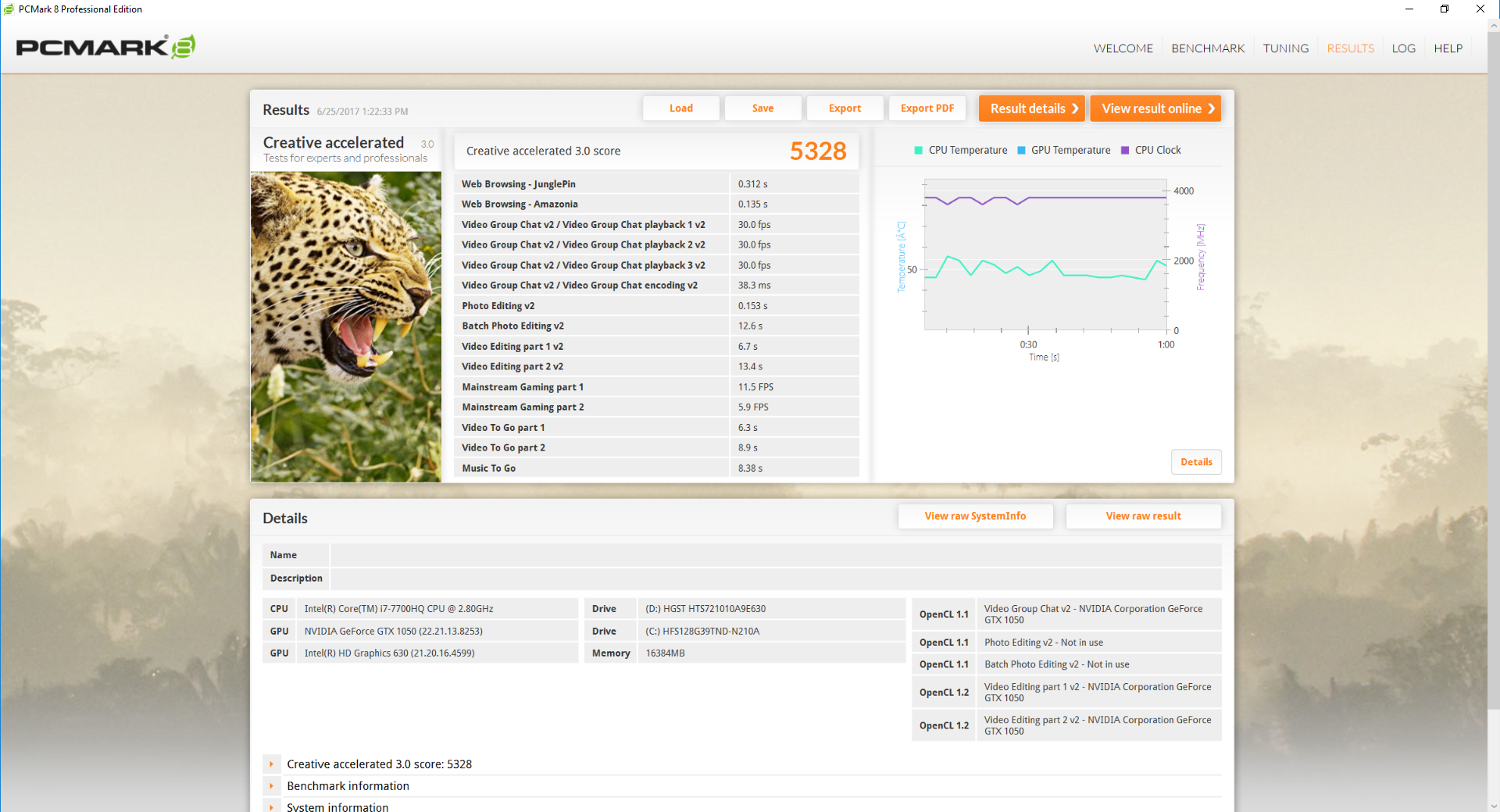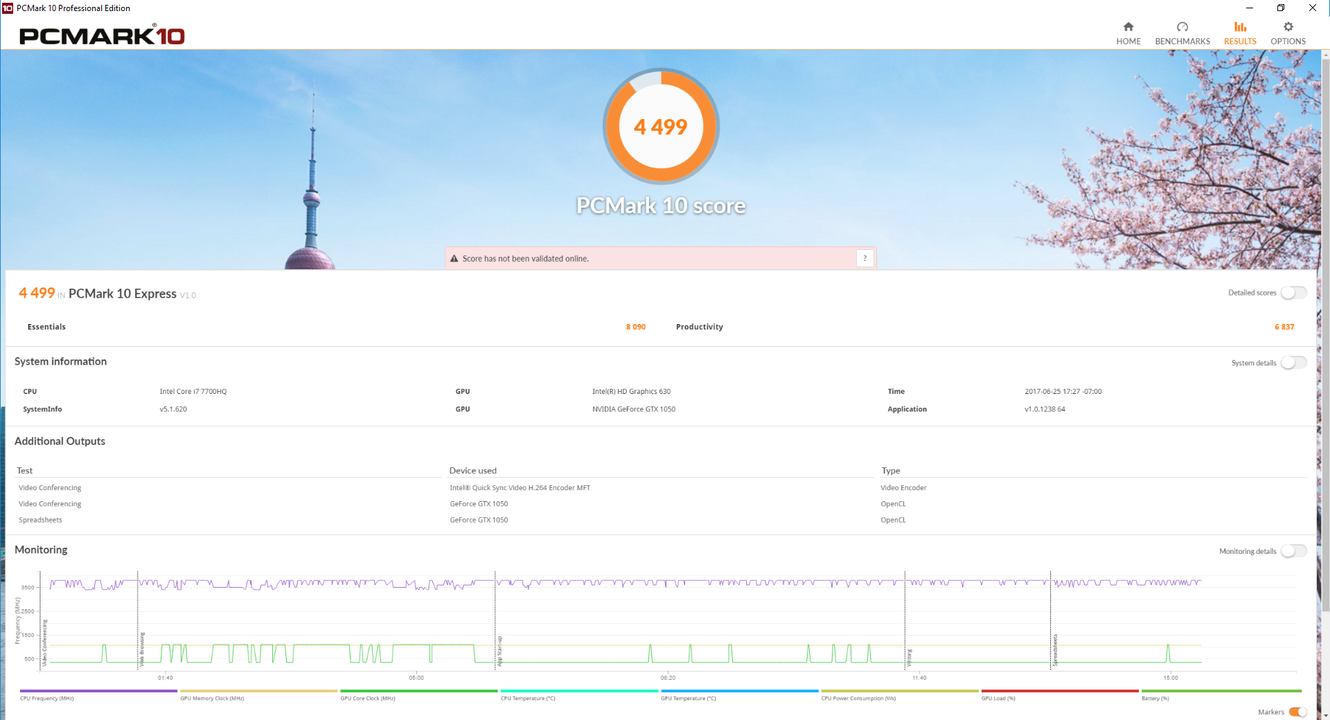i7-7700HQ، GeForce GTX 1050 Mobile، 63.3 واتساعت