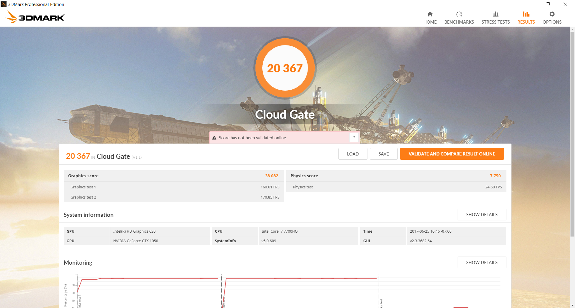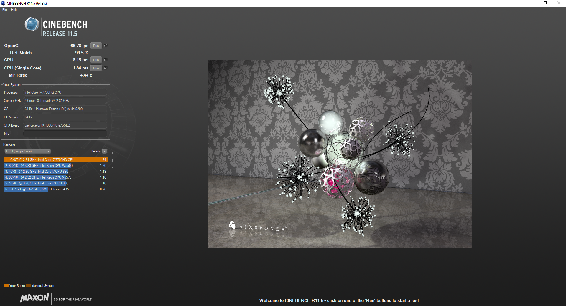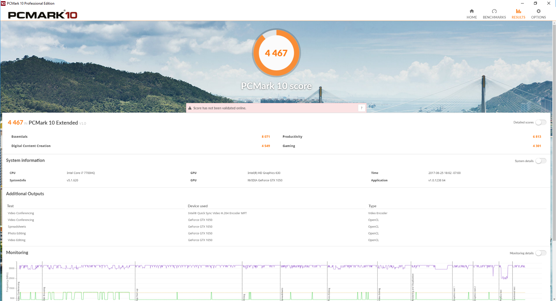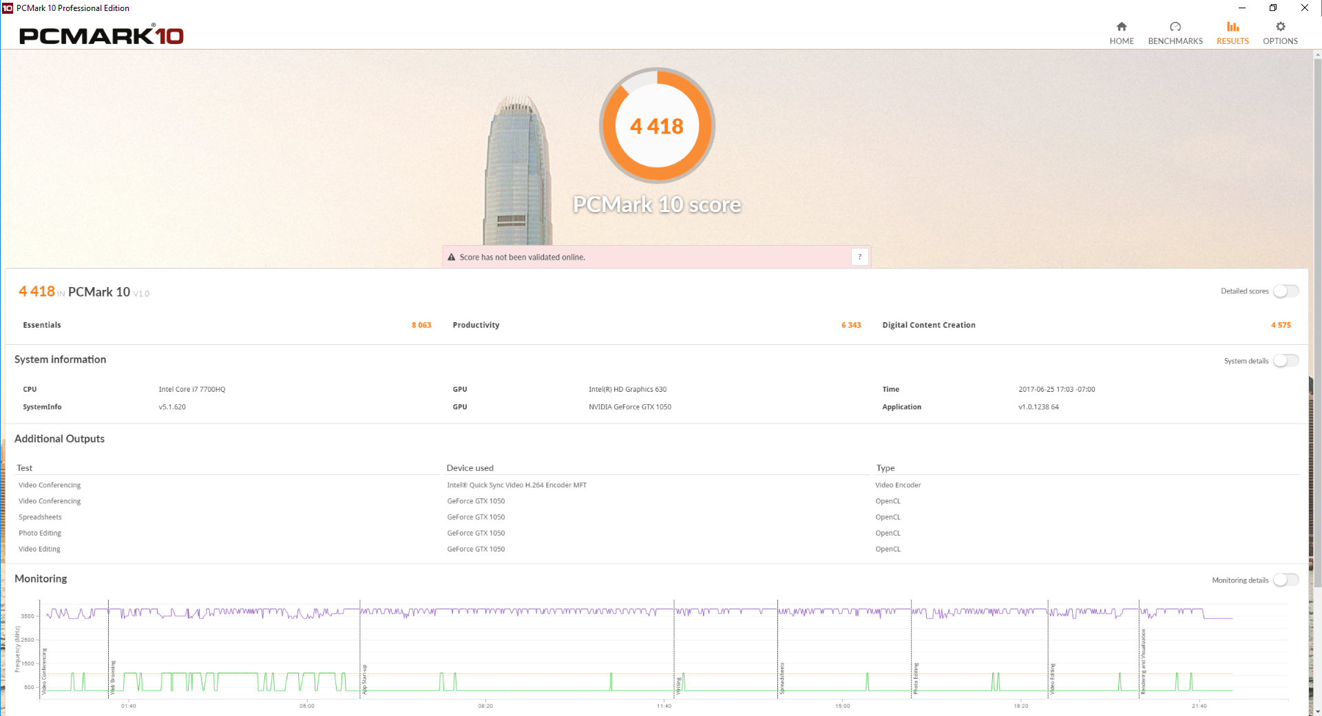 i7-7700HQ، GeForce GTX 1050 Mobile، 63.3 واتساعت