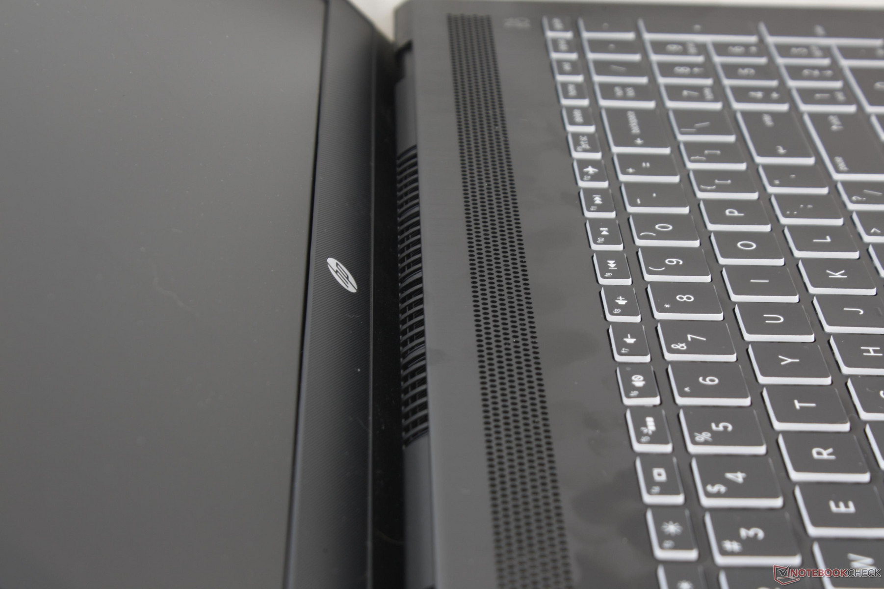 مشبکهای خروجی هوا رو به بالا به سمت نمایشگر قرار دارند. فنها همیشه فعال هستند، بدون توجه به بار سیستم یا تنظیمات قدرت. رفتار فنها نسبت به طراحی قدیمی Pavilion 15t تغییرات قابل توجهی نکرده و این موضوع ناراحتکننده است، زیرا سیستم معمولاً صدای بلندی تولید میکند که نسبت به سایر نوتبوکهای ۱۵ اینچی هنگام مرور روزانه بارها بیشتر است. بار متوسط که توسط 3DMark06 نمایان میشود، صدای فن 43 دسیبل (A) تولید میکند، در حالی که بازی The Witcher 3 کمی بلندتر و 45 دسیبل (A) خواهد بود. ما این دامنه صدای 40-50 دسیبل (A) را هنگام بازی آزاردهنده میدانیم و پیشنهاد میکنیم اگر ممکن است از هدفون برای کاهش صدای فن استفاده کنید.