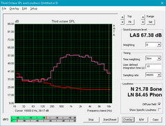 حجم صدای حداکثر کمی بلندتر از Pavilion 15t است، اما کیفیت لزوماً بهتر نیست. اندازهگیریهای نویز صورتی ما نشان میدهد که تولید فرکانسهای باس و تریبل در این دستگاه نامتقارن است و نسبت به منحنی متوازن و نرمتر بلندگوهای بزرگتر Eurocom Sky X7E2 متفاوت است. با اینکه باس به وضوح کم است، تنظیمات صدای بلند هیچگونه لرزشی در بدنه ایجاد نمیکند و هیچگونه نویز استاتیک وارد نمیشود. بلندگوهای داخلی لزوماً بد نیستند، اما قطعاً برای یک دستگاه چندرسانهای زیرسطحی هستند.