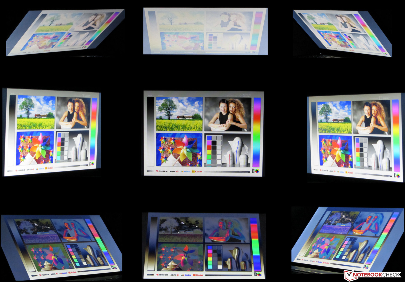 در حالی که صفحهنمایش از نظر روشنایی استاندارد است، کنتراست آن (۶۹۰:۱) و مقدار سیاه (۰.۳ cd/m²) بسیار خوب هستند. لپتاپهای گرانتر اغلب نمیتوانند این مقادیر خوب را ارائه دهند. این صفحهنمایش نمیتواند بهطور کامل پوشش sRGB یا AdobeRGB را پوشش دهد، اما پوشش sRGB آن نسبتاً خوب است.