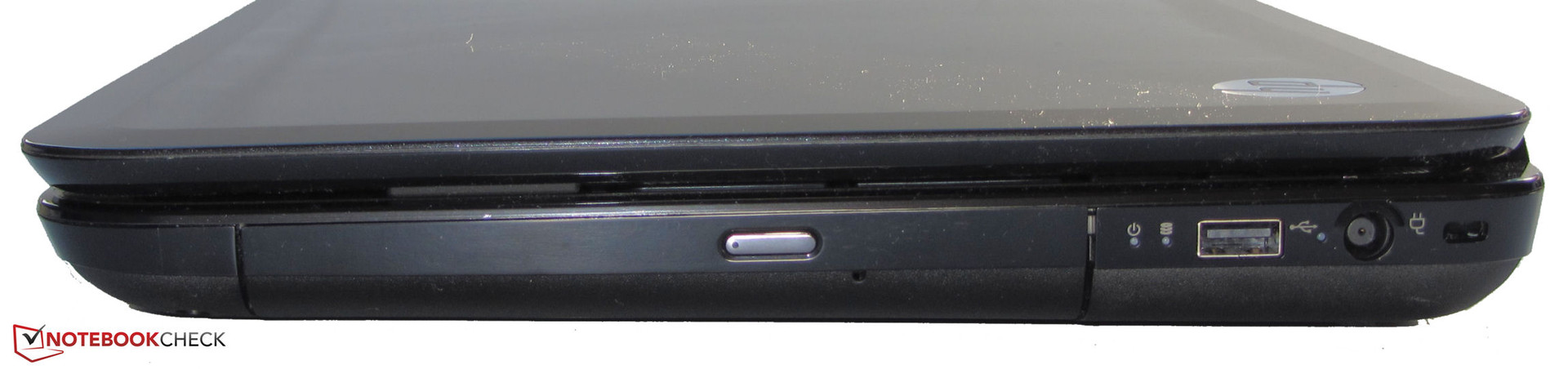 سمت راست: شیار قفل کینسینگتون، USB 2.0، درایو DVD