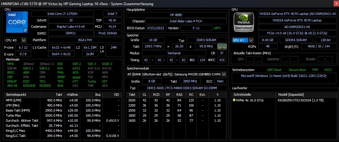 | HP Omen 16-xf0376ng | 9W | 14W | 176W |