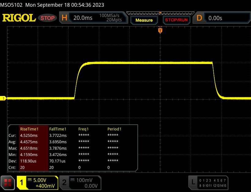 - زمان افزایش (rise): 4.5 میلیثانیه