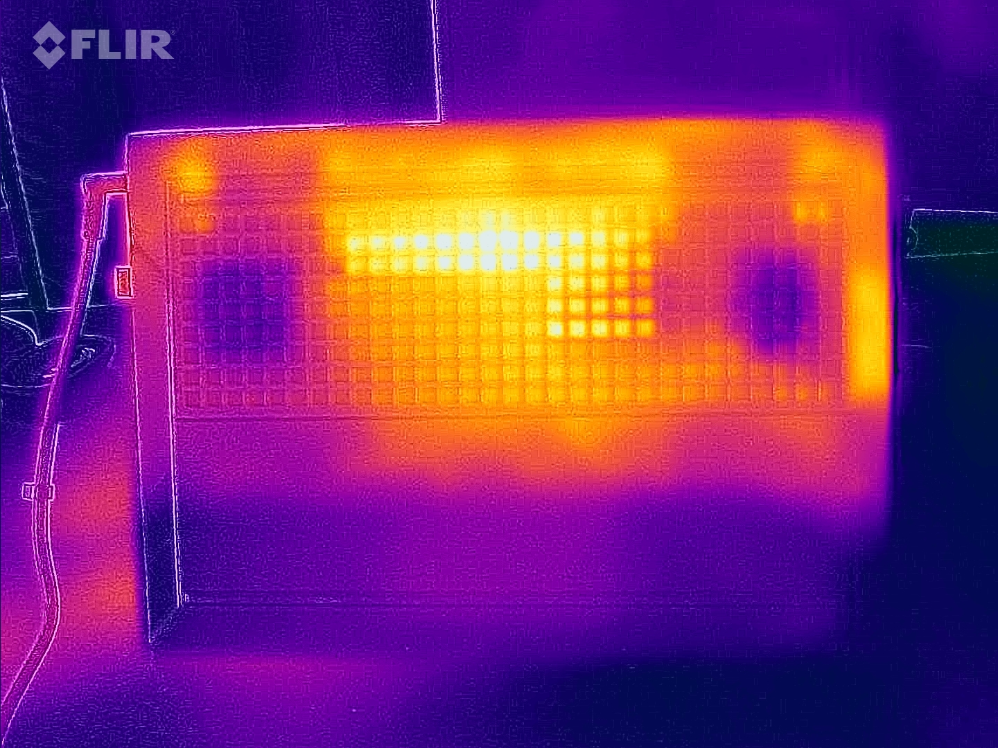 پس از یک ساعت اجرای بازی The Witcher 3، دمای بخش بالایی شاسی به 52 درجه سانتیگراد و بخش زیرین بدنه به 54 درجه سانتیگراد رسید.