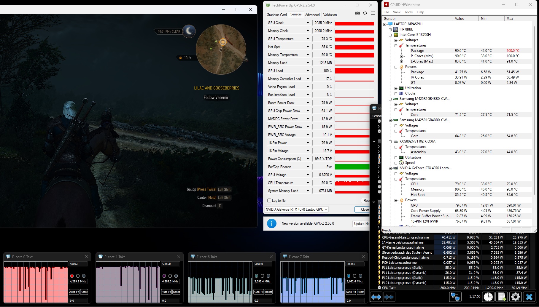 - میانگین دمای سطح بالایی هنگام بازی The Witcher 3: 41.6 درجه سانتیگراد (میانگین این کلاس: 33.9 درجه سانتیگراد).
