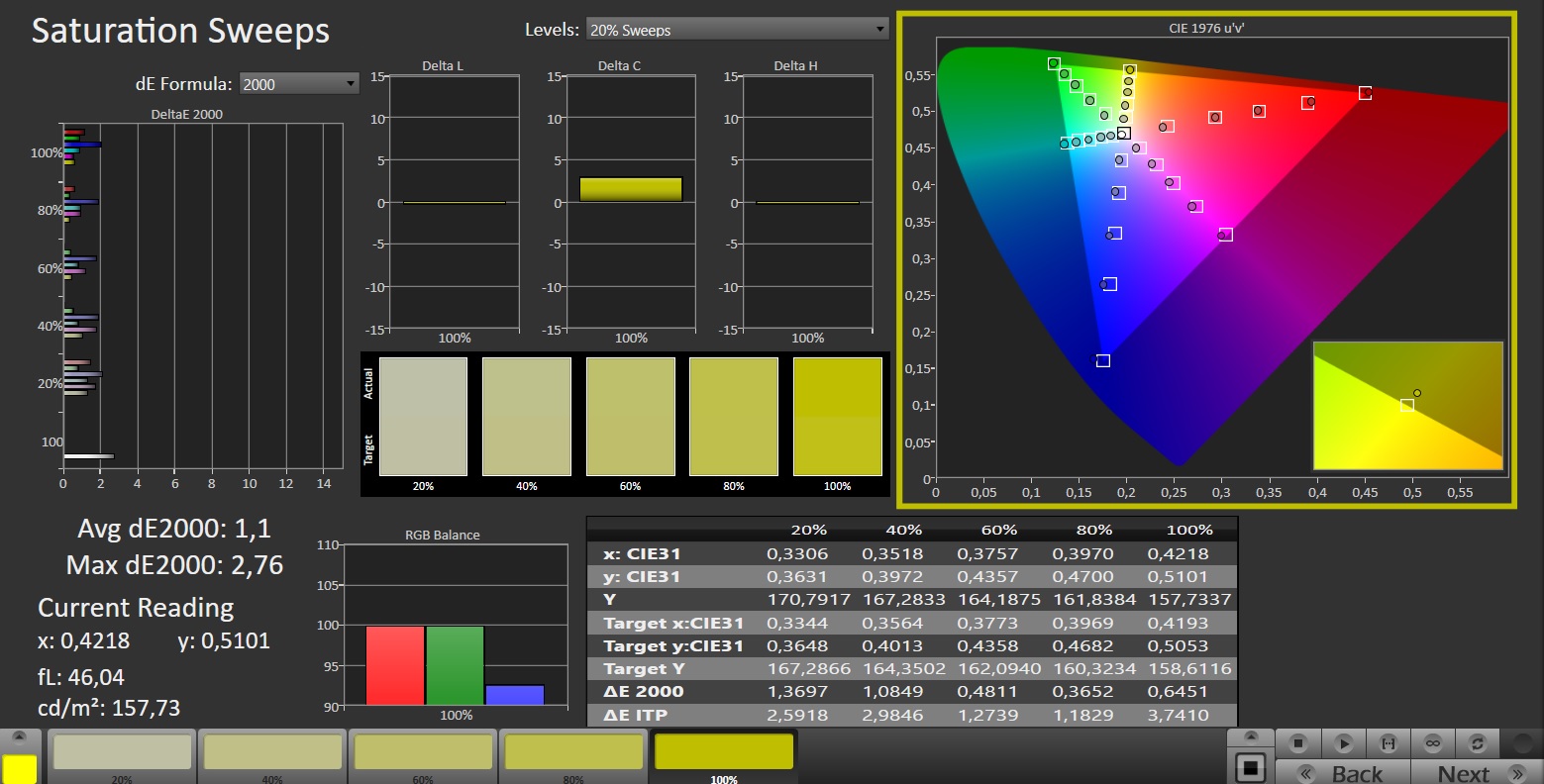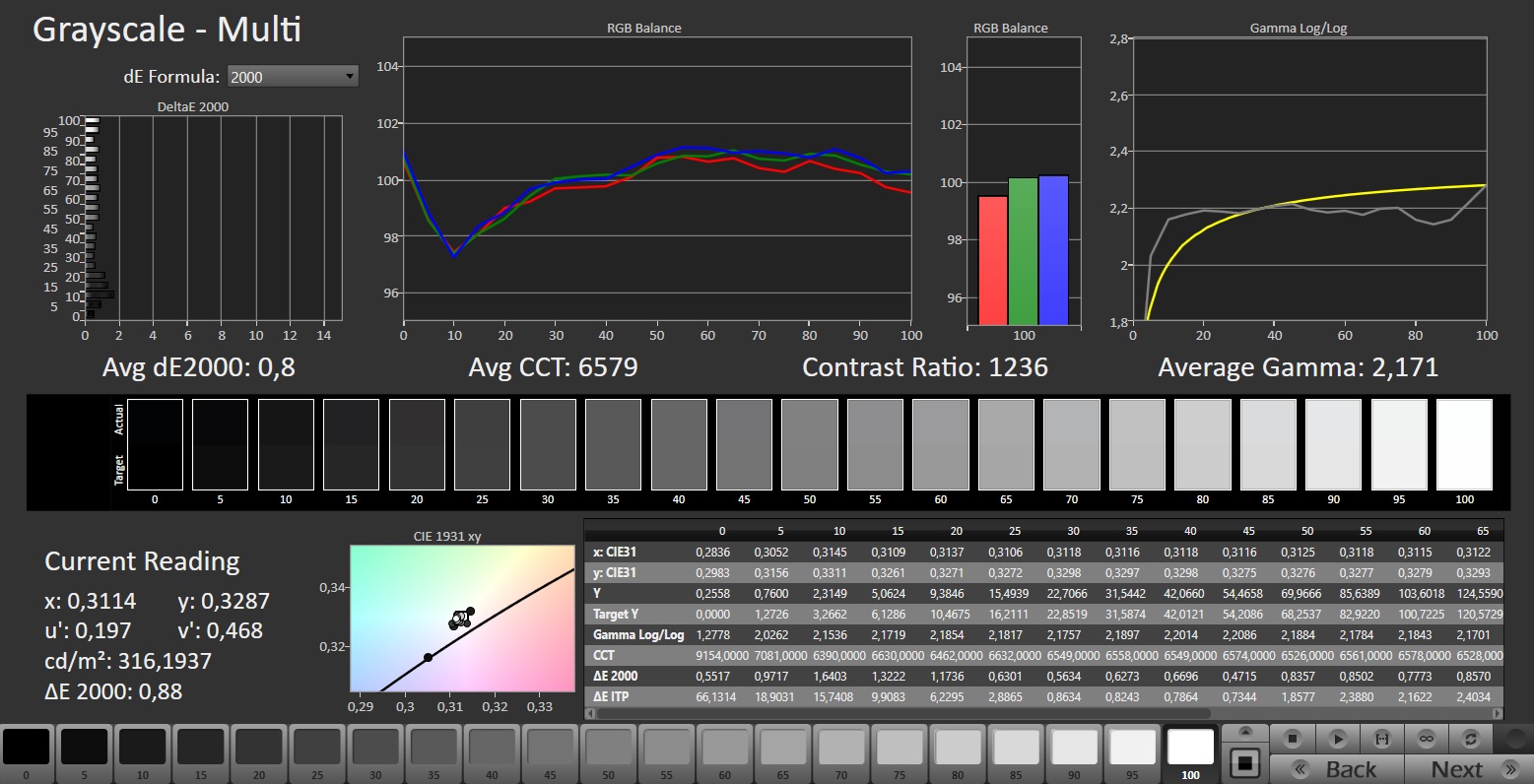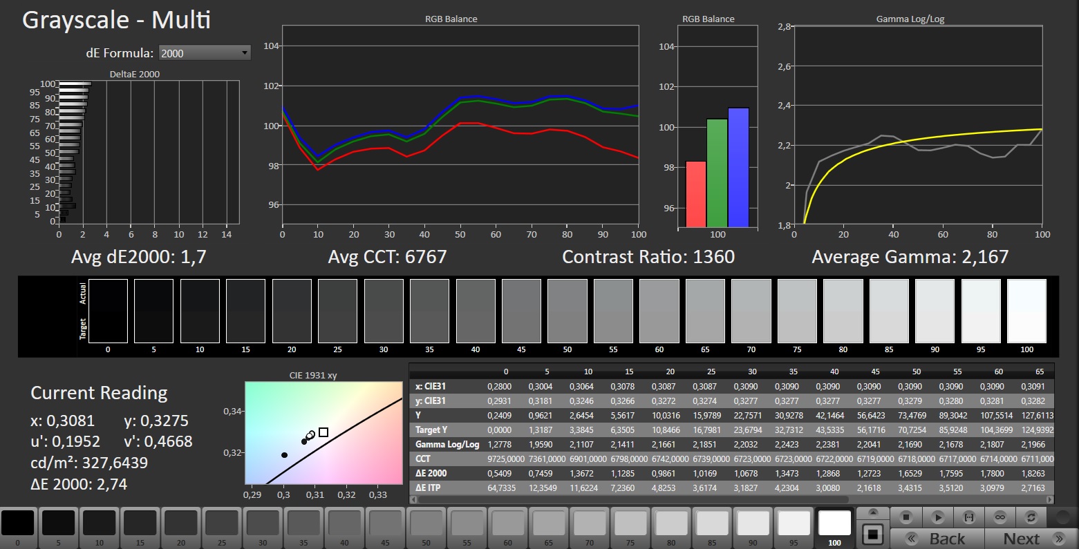 - ΔE مقیاس خاکستری: 1.7 | محدوده: 0.5-98 | میانگین: 5.2
