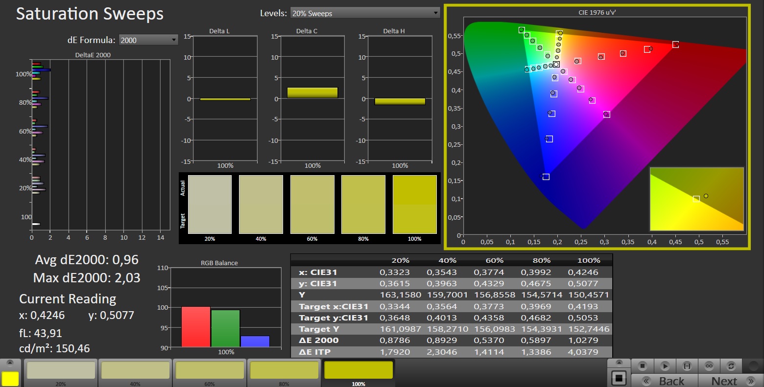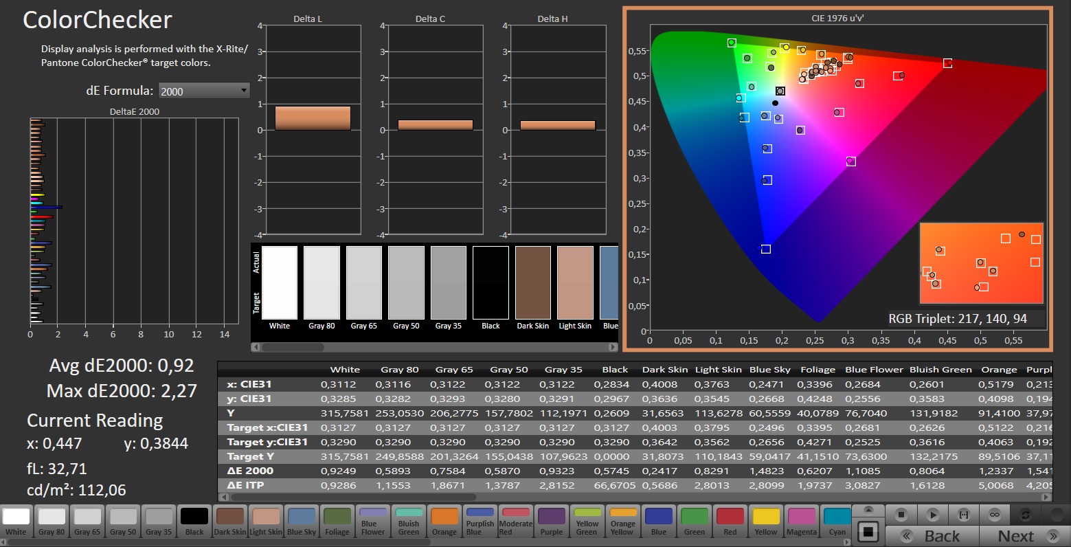 - ΔE رنگ: 1.3 | محدوده: 0.5-29.43 | کالیبرهشده: 0.92