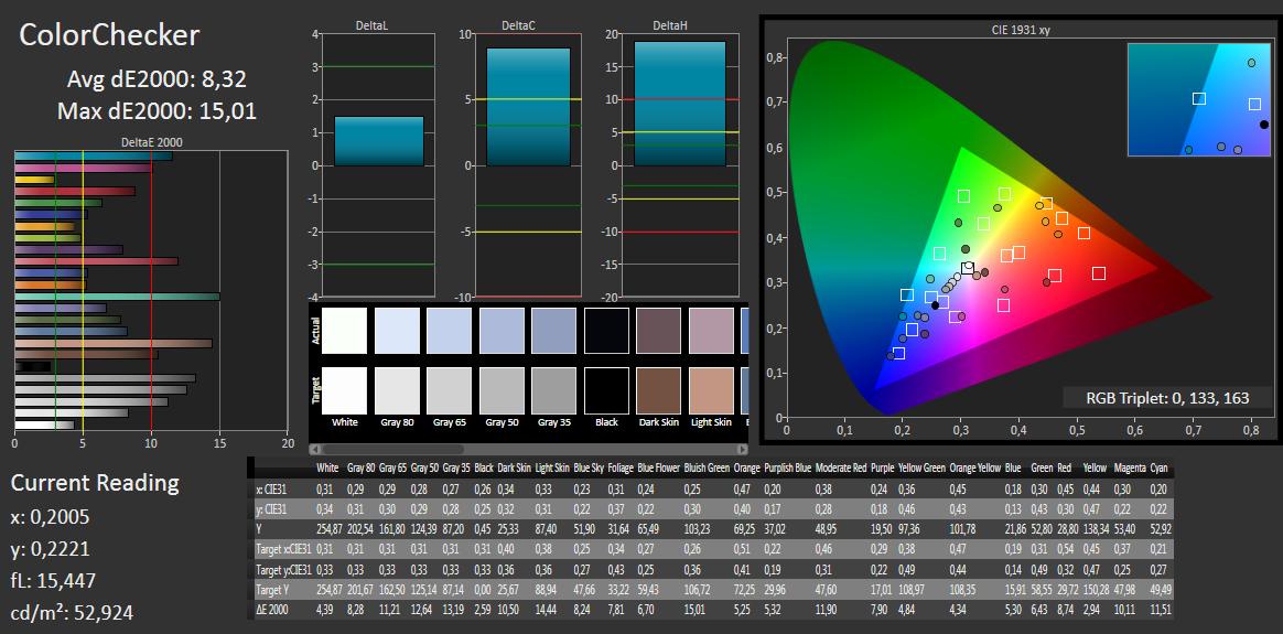 نمایشگر دستگاه دچار تمایل رنگی به آبی است که برای پنل های TN کم هزینه پدیده ای رایج محسوب می شود. انحراف رنگی DeltaE در سطح بالایی قرار دارد و دمای رنگ نیز با حدود 11000 کلوین، بسیار خنک تر از حد ایدئال است. هرچند این وضعیت برای استفاده های معمول تجاری مشکل ساز نیست، اما برای کاربر حرفه ای با چشم آموزش دیده، ممکن است آشکار باشد.