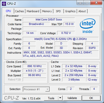 E50-80 از پردازنده ی Intel Core i5-5200U استفاده می کند. این پردازنده ی کم مصرف دو هسته ای با فرکانس پایه ی 2.2 گیگاهرتز کار می کند و از طریق فناوری Turbo می تواند هر دو هسته را تا 2.5 گیگاهرتز و یک هسته را تا 2.7 گیگاهرتز ارتقا دهد. نتایج بنچمارک Cinebench در حالت باتری هم مشابه حالت برق مستقیم است و نشان می دهد CPU در هر دو حالت به حداکثر توان خود دسترسی دارد.