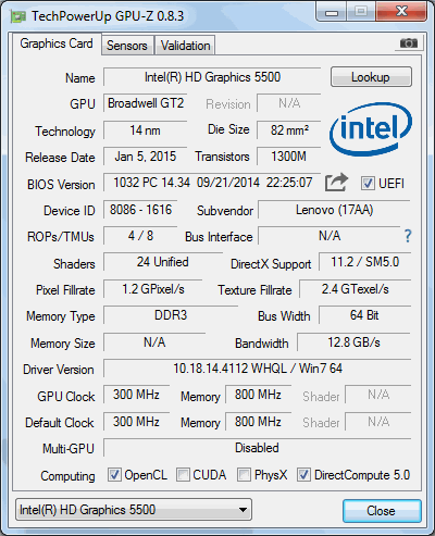 عملکرد گرافیکی Lenovo E50-80